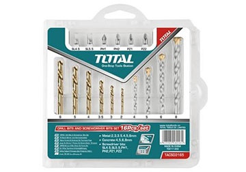 Tất cả nỗ lực của tập đoàn TOTAL được dành cho việc tạo thương hiệu TOTAL nói chung và sản phẩm 1-12mm Bộ mũi khoan sắt HSS 15 chi tiết Total TACSDL51501 nói riêng để phát triển thành chuyên gia công cụ đẳng cấp thế giới. Sản phẩm TOTAL được sản xuất, lắp đặt tại Trung Quốc.
