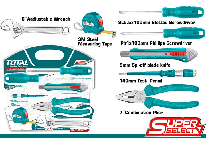 Total Tools là thương hiệu mới được nhập khẩu vào thị trường Việt Nam, hứa hẹn sẽ mang đến nhiều trải nghiệm mới cho giới xây dựng và cơ khí. Total là thương hiệu nổi tiếng thế giới cung cấp dụng cụ dân dụng, dụng cụ cầm tay và các máy móc dùng điện, thiết bị an toàn cho gia đình và nhiều công trường xây dựng. Nhãn hiệu Total Tools có nguồn gốc ở Đức và được sản xuất tại Trung Quốc theo các tiêu chuẩn chất lượng của Mỹ, Châu Âu.